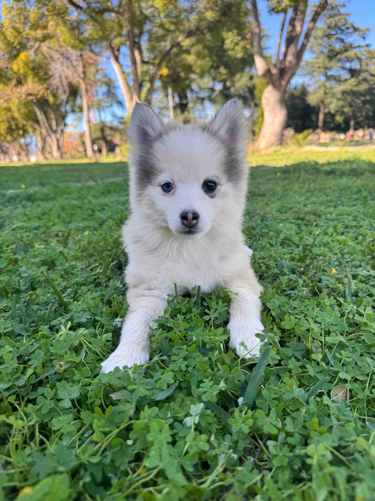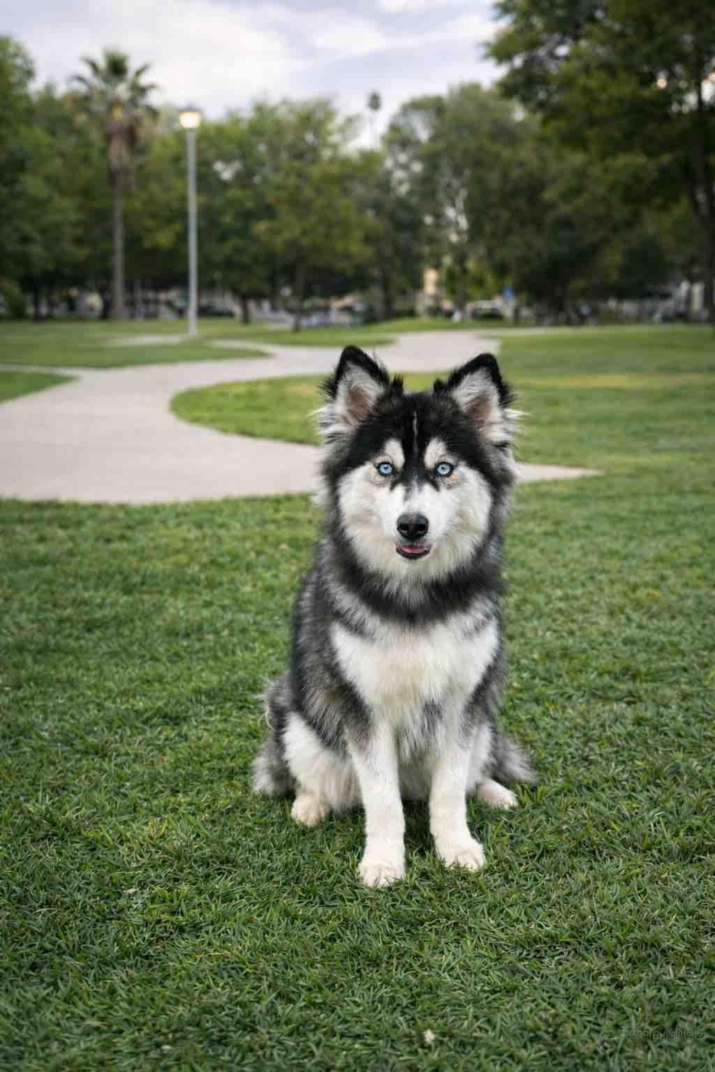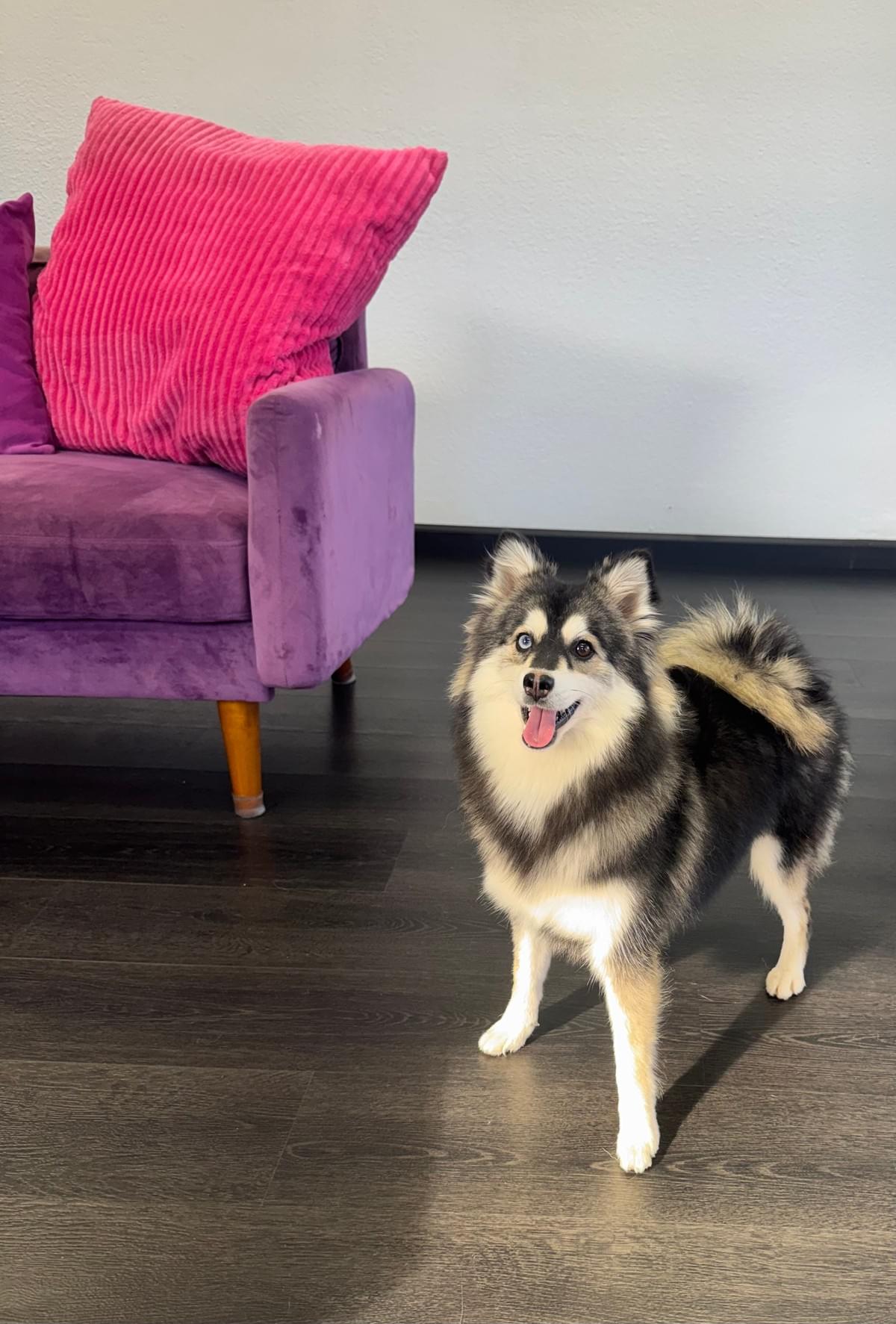 She is a 12lb plush coat Pomsky. Very quiet, loving personality who just wants to do life next to you.
