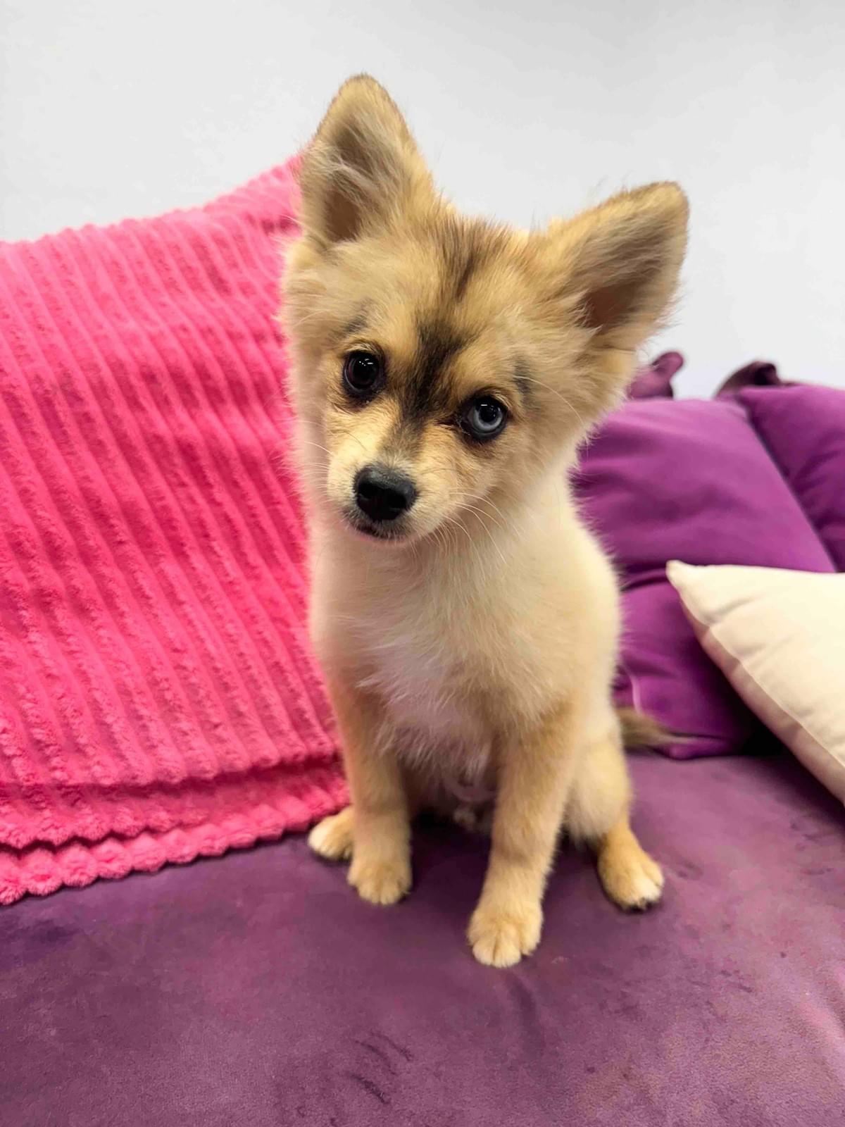She's a Agouti coated Toy Pomsky at 5lbs. Loves to follow you around the house. Loves people.
